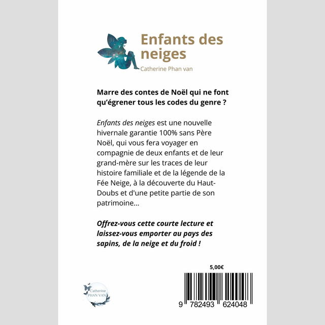 Enfants des neiges est une nouvelle hivernale garantie 100% sans Père Noël, qui vous fera voyager en compagnie de deux enfants et de leur grand-mère sur les traces de leur histoire familiale et de la légende de la Fée Neige, à la découverte du Haut-Doubs et d'une petite partie de son patrimoine...